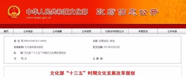 【权威发布】文化部“十三五”时期文化发展改革规划(全文)